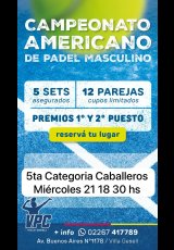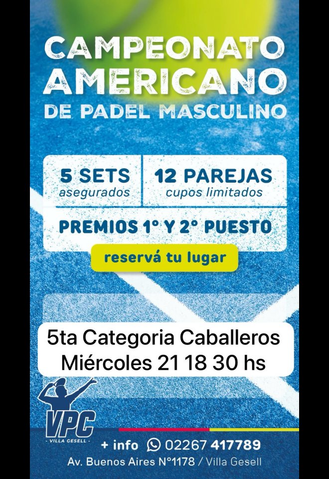 »» Evento: TORNEO AMERICANO 5TA CATEGORIA CABALLEROS »» Localidad: Villa Gesell »» Fechas: 21/02/2024 al 21/02/2024